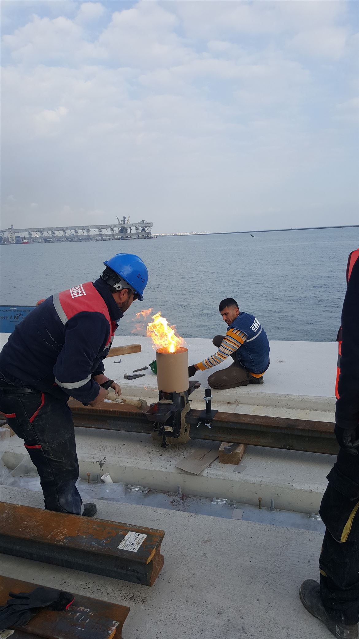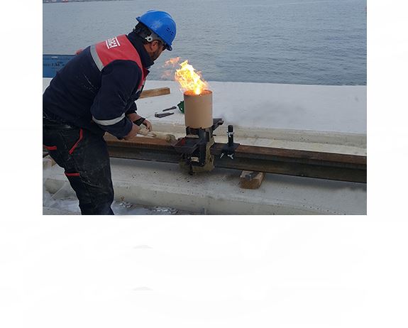 Mersin Limanı Genişletme projesi kapsamında yapılan yeni rıhtım Vinç Yolunun A150 Ray montajı ve Alüminotermit ray kaynaklarının yapılması